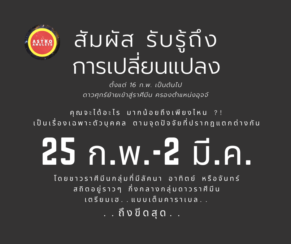 ช่วงที่ผ่านมา ชาวราศีมีนหลายท่านคงได้สัมผัสรับรู้ถึงสัญญาณการเปลี่ยนแปลงเชิงบวกที่เกิดขึ้นในวิถีชีวิต ราวๆ กลางเดือนกุมภาพันธ์ 2566 เป็นต้นไป เรื่องราวดีๆ ในรูปแบบของดาวศุกร์จะส่งคลื่นพลังงานบวกอีกลูกเข้ามาชาร์จพลังงานเติมเต็มชาวราศีมีนอีกหลายท่าน รวมทั้งท่านที่ได้รับข่าวดีมาแล้วก่อนหน้านี้