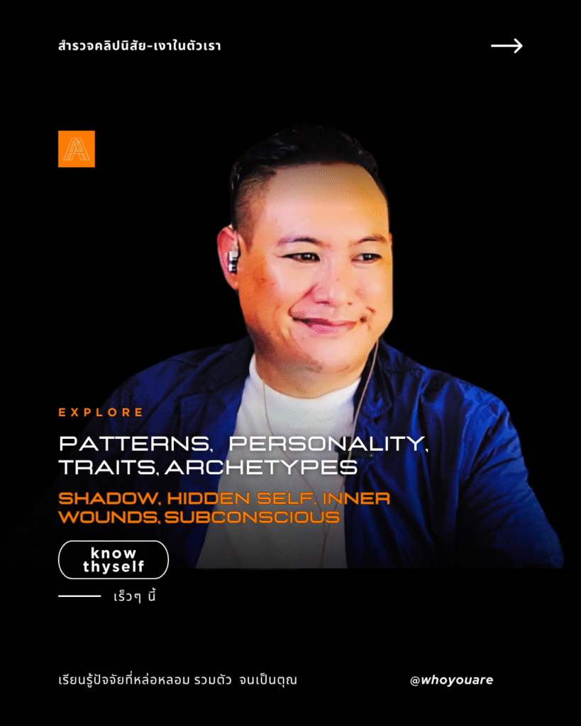 คลิกเข้าชม Playliistเธอในแบบที่แม้แต่ตัวคุณเองอาจไม่เคยเห็น เงาที่หลบซ่อนอยู่ในดวงจิต สิ่งที่คุณไม่ได้พูด…แต่ใจรู้ดี พฤติกรรมที่คุณทำซ้ำ…แม้จะเจ็บทุกครั้ง ถอดหน้ากากจิตใจ กระจกเงาภายใน ที่สะท้อนเราทั้งหมด ผู้ทำลายเงียบๆ…ที่อยู่ในตัวคุณเอง
