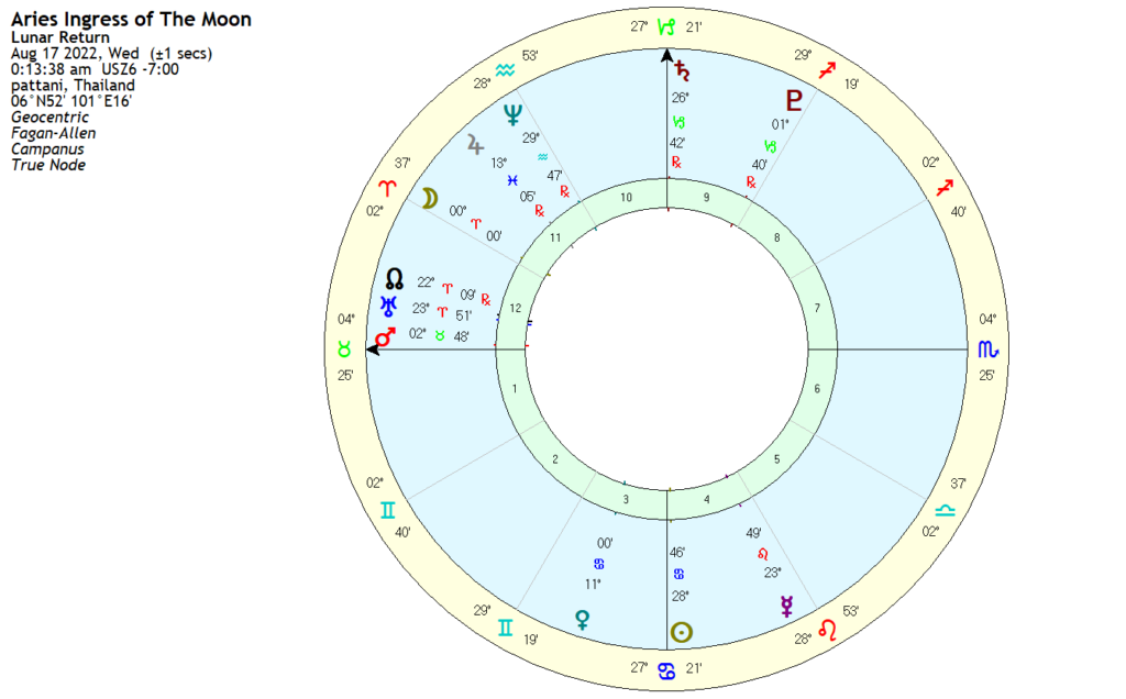 ภาพด้านล่าง คือ แผนภูมิประจำสัปดาห์ (แอริลูน่าร์) ซึ่งข้อมูลที่ปรากฏในแผนภูมินี้ เมื่อใช้องค์ความรู้ทางโหราศาสตร์มาช่วยแปลรหัส ท่านทั้งหลายก็จะเห็นภาพที่สะท้อนกันไปมาชัดเจนระหว่างเรื่องราวของเหตุการณ์ที่เกิดขึ้นข้างต้นกับข้อมูลที่ได้จากการแปลรหัสจุดปัจจัยที่ปรากฏในแผนภูมิประจำสัปดาห์นี้